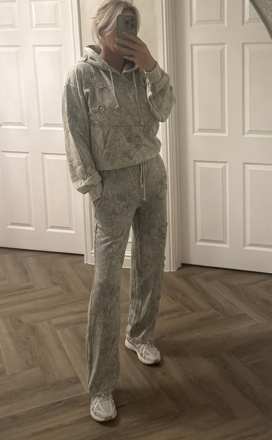 Acid wash cross embroidered tracksuit